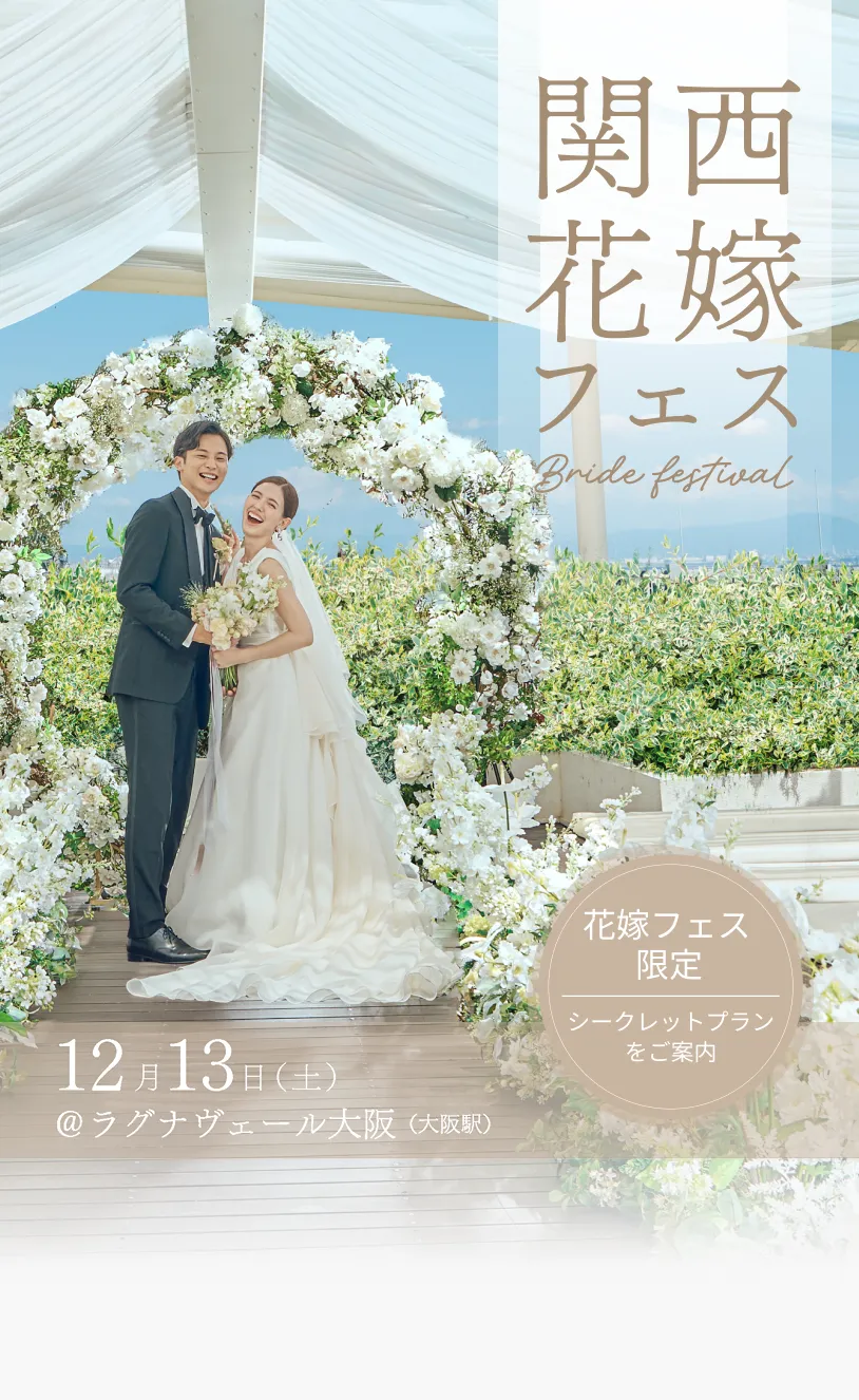 花嫁フェス限定のお得なプランをご用意。開催シーズンや曜日・お日柄など条件別に、同じ品質でお得に叶う結婚式をご案内します。プランによっては出店式場を横断して利用することもできます。